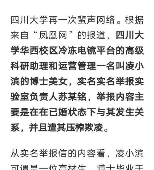 首先,让我们来回顾一下这个事件。那是在不久前,四川大学发生了一起引起广泛关注的事件。起初,只是一些小道消息在网络上流传,但随着时间的推移,越来越多的细节被曝光,事件也逐渐升级。